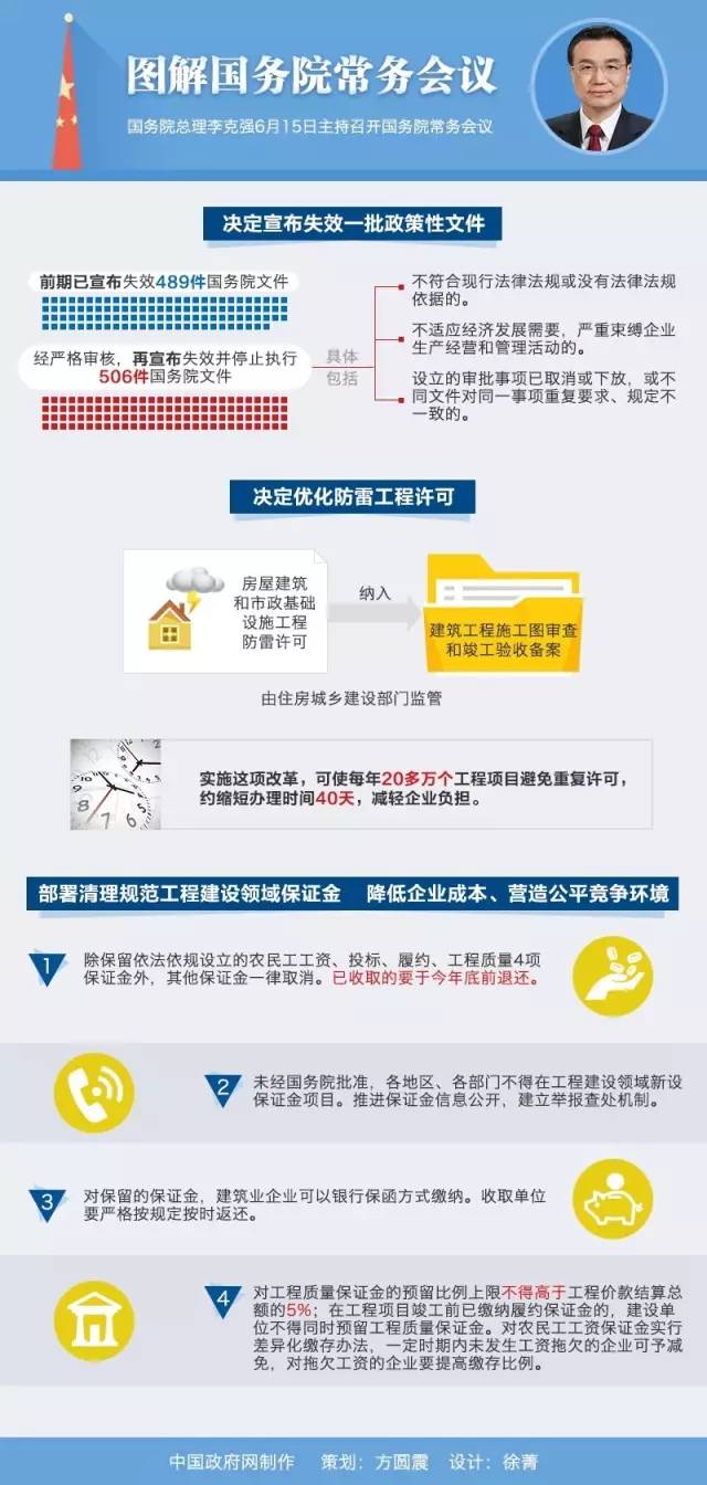 當(dāng)天會議部署清理規(guī)范工程建設(shè)領(lǐng)域保證金,降低企業(yè)成本、營造公平競爭環(huán)境。有關(guān)部門負(fù)責(zé)人在發(fā)言中說,目前工程建設(shè)領(lǐng)域保證金不僅收取名目繁多,也存在占用資金數(shù)額巨大、返還時(shí)間較長等問題。