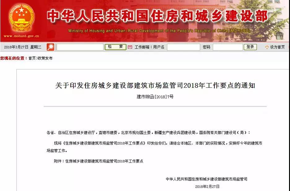 關(guān)于印發(fā)住房城鄉(xiāng)建設(shè)部建筑市場(chǎng)監(jiān)管司2018年工作要點(diǎn)的通知